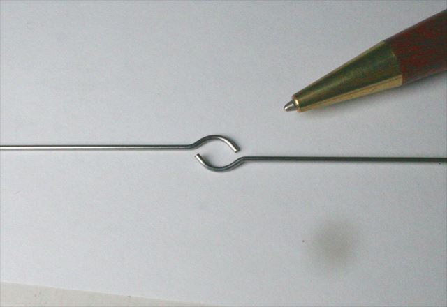 ステンレスのφ1線材2本をアークスポット溶接を用いて溶接しています。